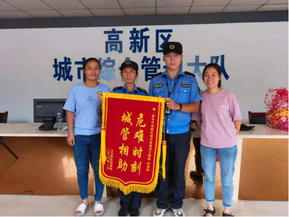 8月21日,郭海敏的母親和小姨帶著錦旗和水果特地趕到高新區(qū)城市綜合管理大隊(duì)對(duì)我隊(duì)兩名隊(duì)員進(jìn)行感謝,閑談中才知道小郭已經(jīng)恢復(fù)的差不多了,郭媽媽也直言:“幸虧當(dāng)時(shí)遇到了你們,小孩子不懂事,要是他強(qiáng)行站起來(lái)走路,恐怕傷害更大,前段時(shí)間我一直在家照顧他,抽不開(kāi)身,但是我們一直記得,真的是非常感謝你們!”