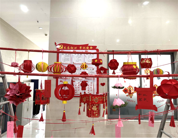在元宵節(jié)前夕,心靈手巧的女職工早早就開始為元宵節(jié)做準(zhǔn)備了--制作手工燈籠,只見彩紙在手中翻飛,不一會,一只只精致的小燈籠就出現(xiàn)在眼前,蓮花燈籠、紅包燈籠、紙剪燈籠,各式各樣,廢舊的紙盒剪裁一下,畫上我們的冬奧吉祥物冰墩墩,就成了元宵節(jié)上的一道亮麗風(fēng)景。