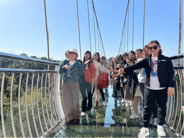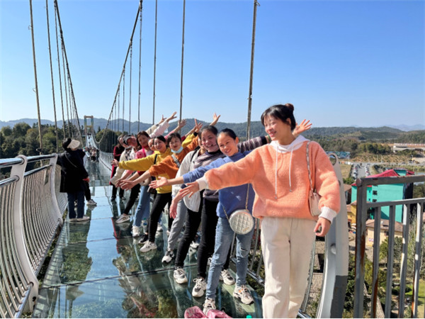 打卡第一站,彩色村網(wǎng)紅玻璃橋,高架的玻璃橋,只從下面看一眼,都心驚,然而對(duì)于我們的女神們來說,征服它,自是不在話下。走上橋,沒有說怕的,橋上,留下的都是美麗的笑臉和倩影。