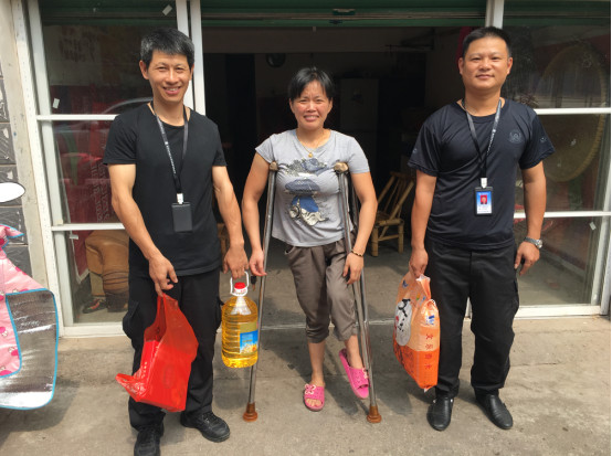 2017年9月30日,公司金融安保大隊(duì)大隊(duì)長李衛(wèi)平、培訓(xùn)中心主任張志文一行代表公司工會(huì)走訪慰問困難職工:建設(shè)銀行保安員葉強(qiáng)、趙軍生、時(shí)朝明,交通銀行保安員李小華,農(nóng)商銀行保安員艾國忠、詹小星,工商銀行保安員胡子琪、劉新貴,中國銀行保安員陳水牙、劉紹斌,江西銀行監(jiān)控中心監(jiān)控員姚鴻梅,贛州銀行監(jiān)控中心監(jiān)控員潘任妹,天網(wǎng)監(jiān)控中心阮琴豐、熊夢杰,行政部后勤人員歐陽晚,向他們表示親切慰問和美好的中秋祝福,并給困難職工送上慰問品,把公司的關(guān)懷送到困難職工手中。